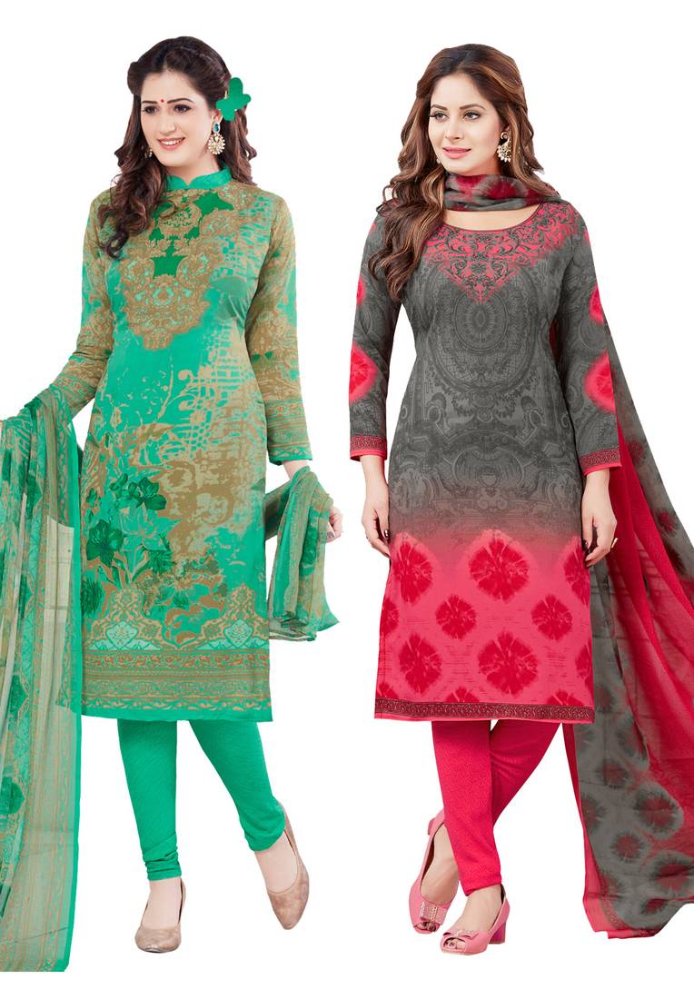 | Product Description | Material 2 : Grey & Pink.Kurta Length : 2.50 Mtr, Bottom Length : 2.00 Mtr, Dupatta Length : 2.25 Mtr.In The Box = A Combo Of 2 Suits With Top, Bottom & Dupatta Fabrics.Wash Care = Wrinkle Free Fabric, Regular Hand Or Machine Wash, Use Mild Detergent And Dry In Shade.Product Colour May Slightly Vary Due To Photographic Lighting Sources Or Your Monitor Settings.We Have Not Authorised Any Other Seller To Sell Our Brand Salwar Studio. Any Seller Doing So Is Selling Fake Salwar Studio Products. Buy Original Salwar Studio Products From The Seller "Salwar Studio" Only. |