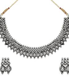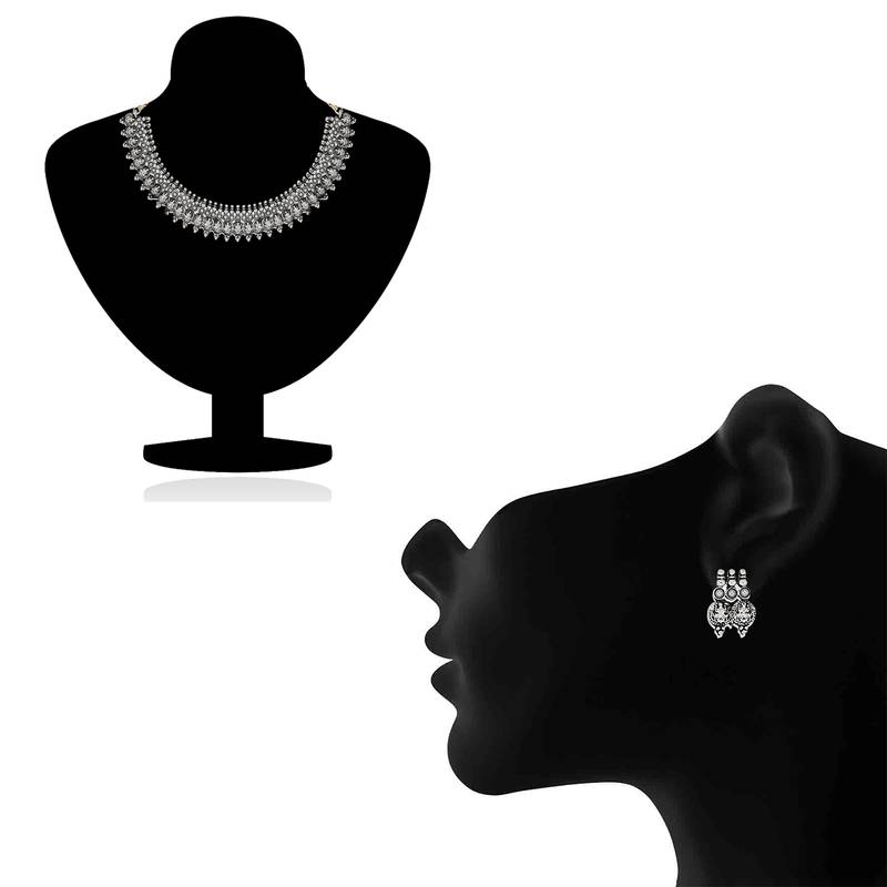 | Product Description | Get Traditional In The Most Fashionable Way With This Oxidised Silver Antique Laxmi Choker Necklace Set And Earrings. Goddess Laxmiji Idol Carved On The Necklace Is Crafted To Expertise With The Use Of First Grade Material . Add An Ethnic Twist To Your Outfit With This Oxidised Silver Laxmi Inspired Necklace Set And Earrings. All Products From Om Jewells Come In A Good Quality Jewellery Box. |