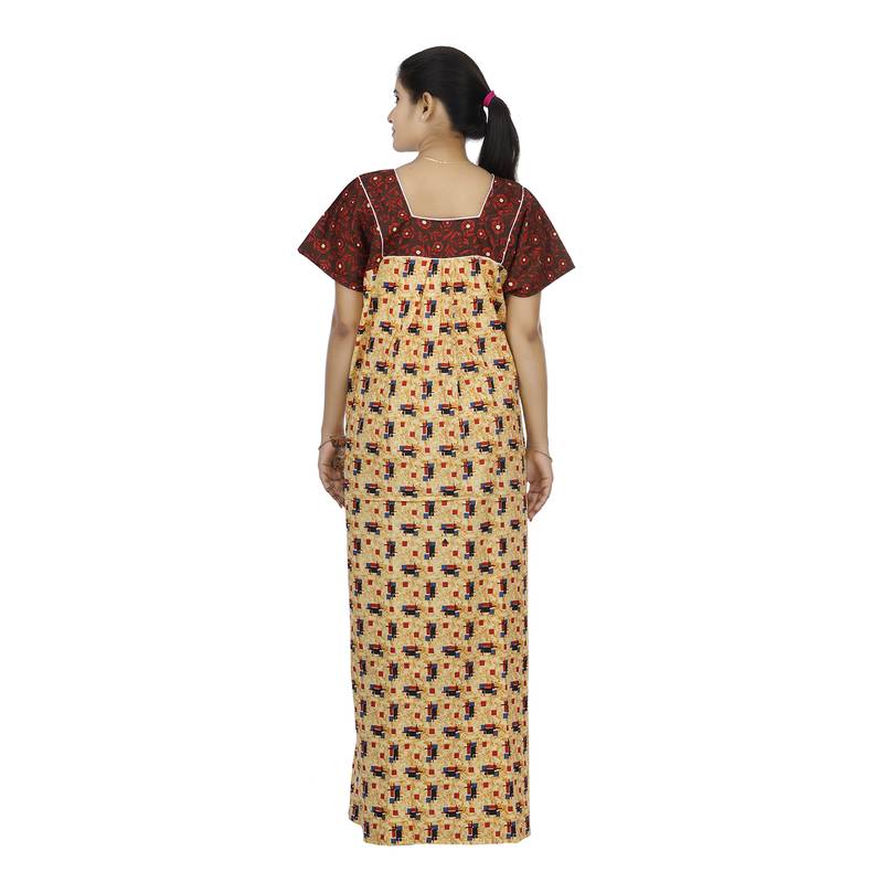 | Product Name | Red & Beige Colour Geometrical Design Printed Square Neck Cotton Nighty For Ladies Nightwear | |