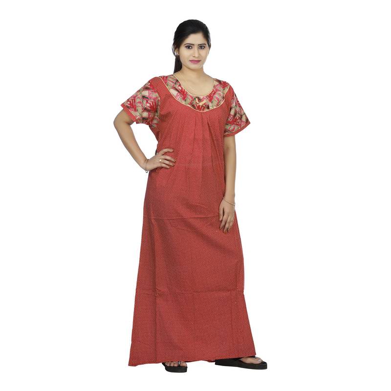 | Product Name | Red & Beige Colour Polka Dots Design Printed Round Neck Cotton Nighty For Ladies Nightwear | |
