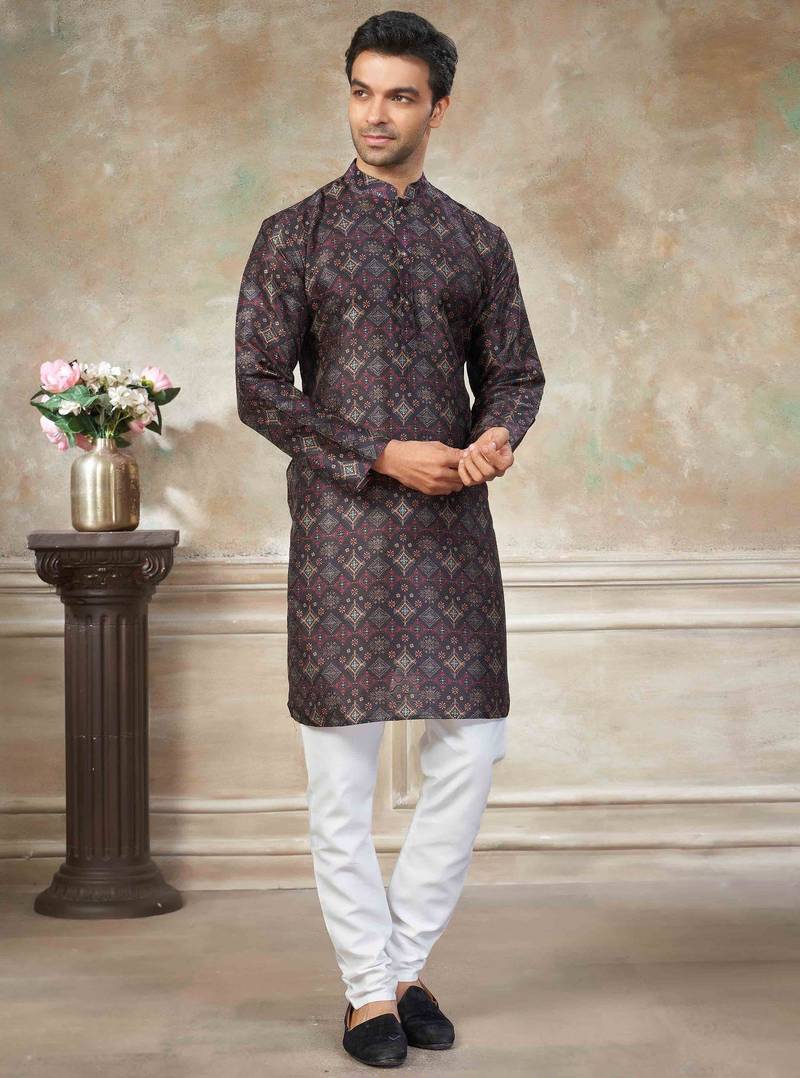 | Product Name | Black Colour Premium Silk Digital Print Kurta Pajama Menswear Collection | |