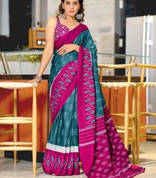 Blue soft cotton printed fancy saree with blouse