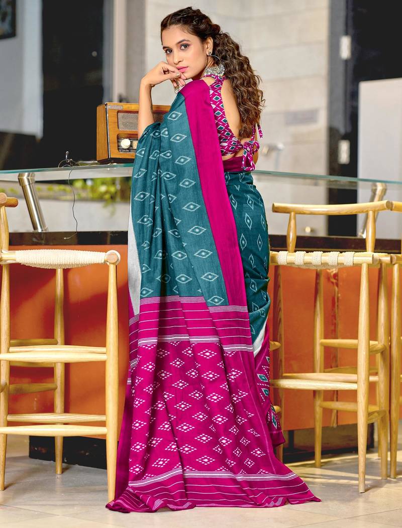 Product Name | Blue Soft Cotton Printed Fancy Saree With Blouse | |