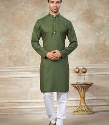 Green colour rayon cotton with weaving sifly kurta pajama mens wear