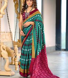 Product Description | Green Mulmul Cotton Printed Fancy Saree With Blouse |