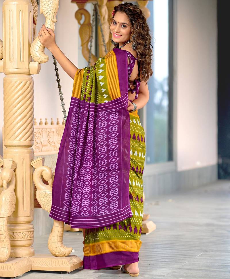 Product Description | Mehandi Mulmul Cotton Printed Fancy Saree With Blouse |