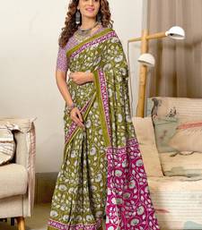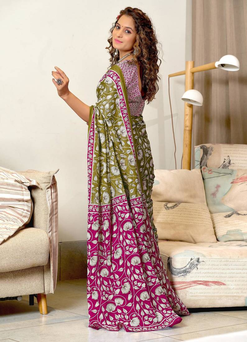Product Description | Mehandi Mulmul Cotton Printed Fancy Saree With Blouse |