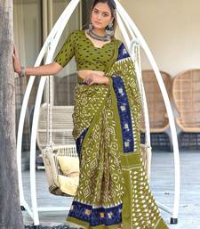 mehendi soft cotton printed fancy saree with blouse
