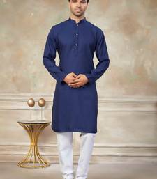 Navy blue colour rayon cotton with weaving sifly kurta pajama mens wear