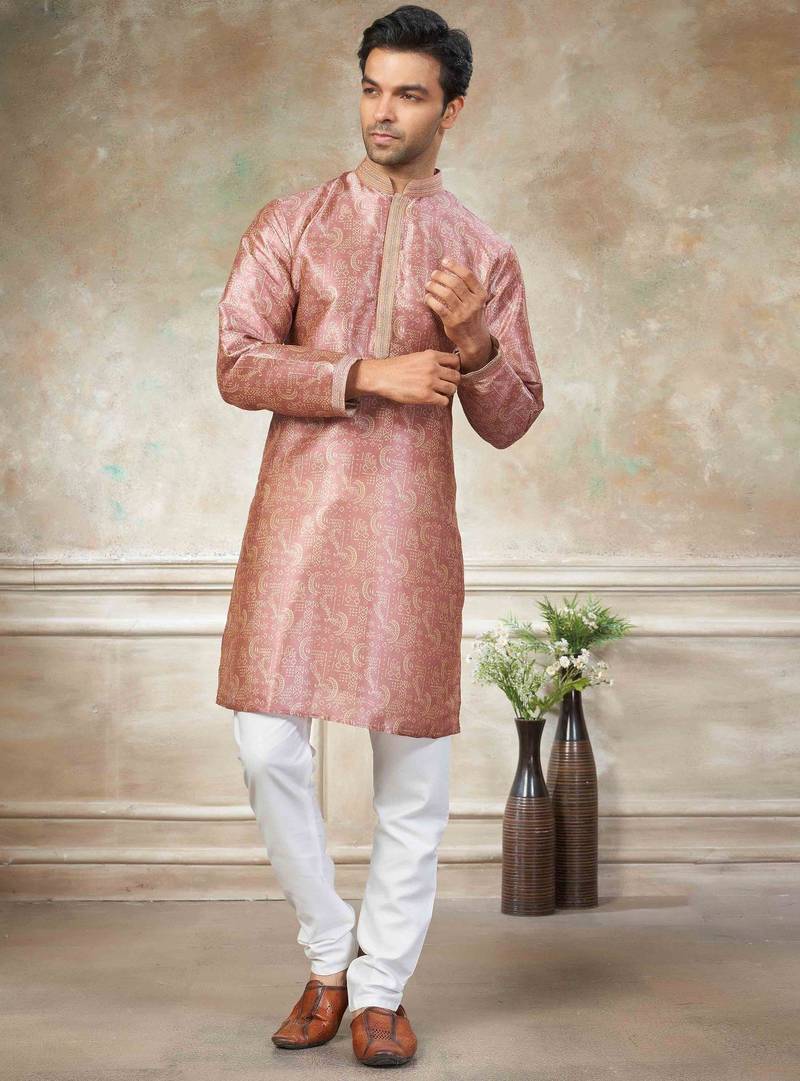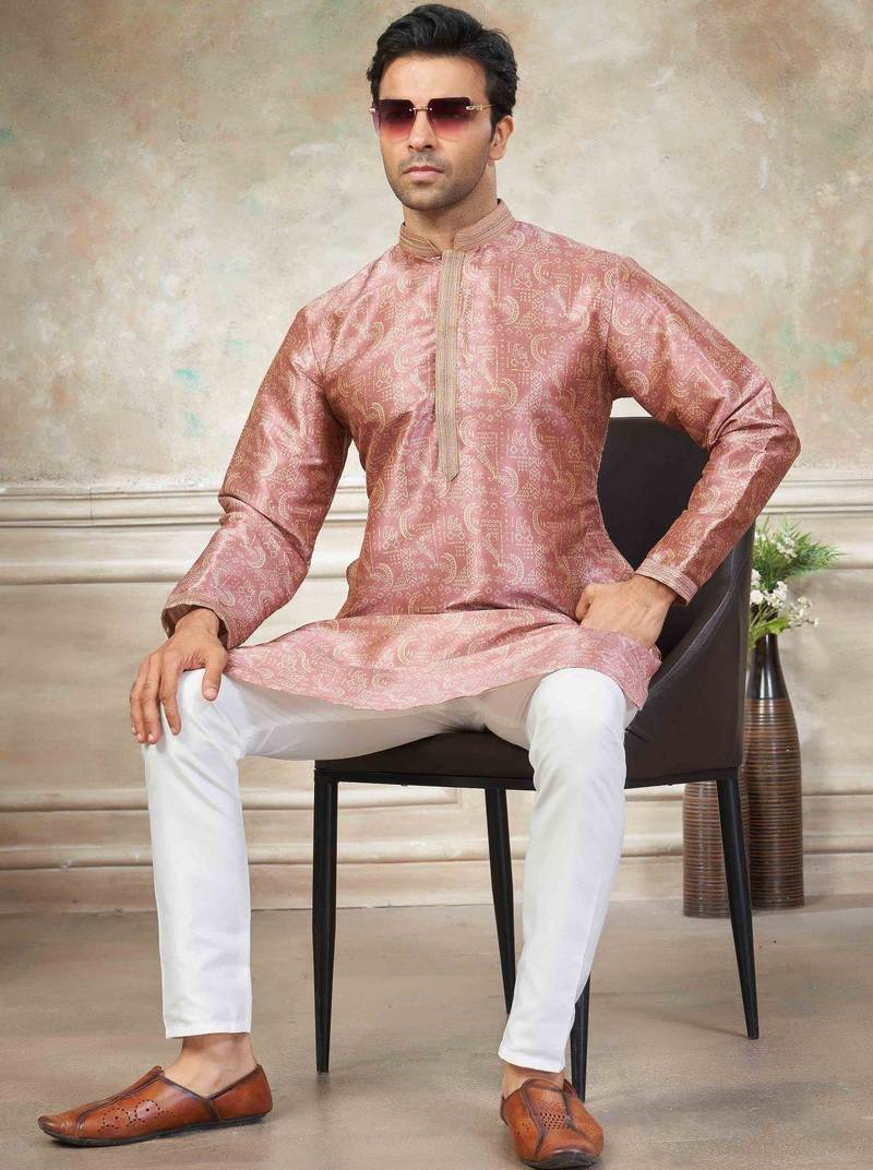 Pink colour cotton with embroidery work kurta payjama menswear collections