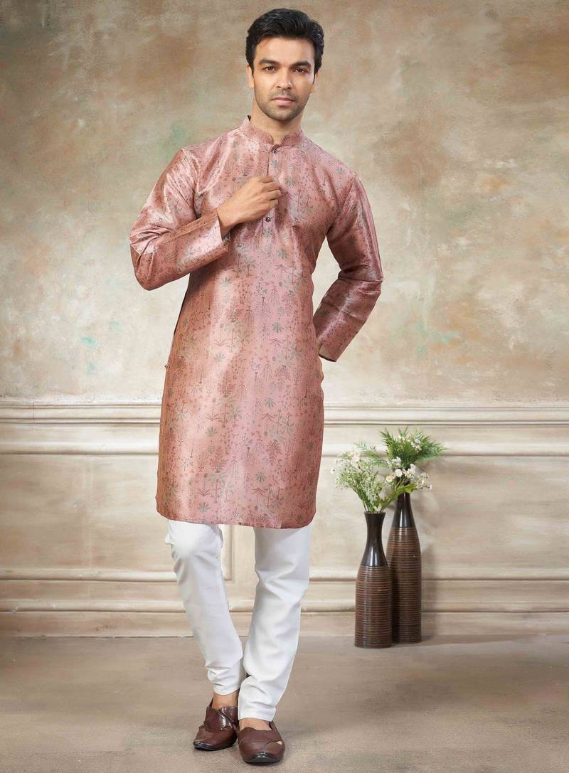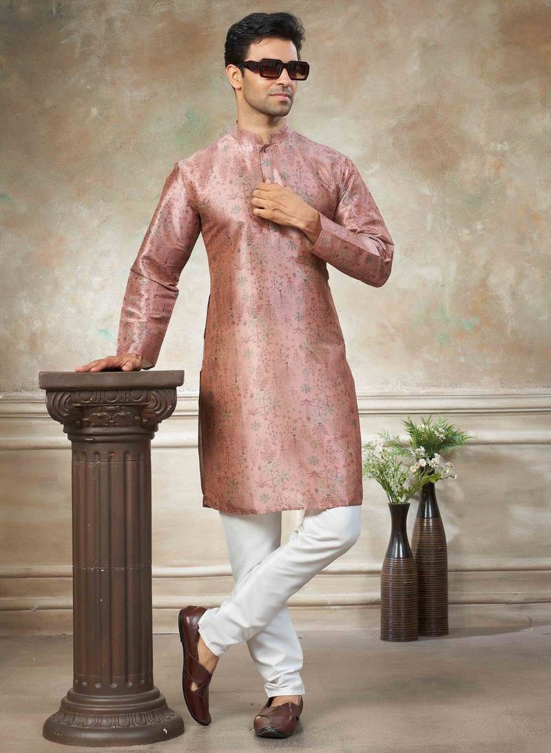 Pink colour premium silk digital print kurta pajama menswear collection
