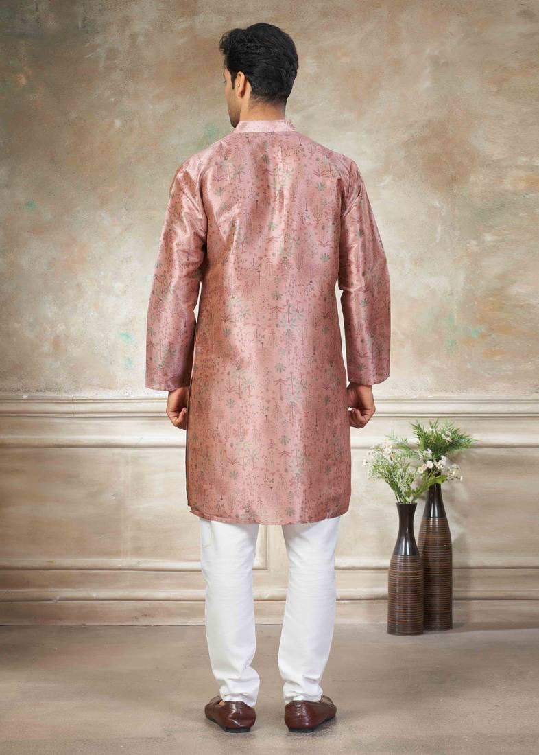 | Product Name | Pink Colour Premium Silk Digital Print Kurta Pajama Menswear Collection | |