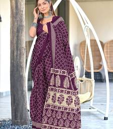 Product Description | Purple Soft Cotton Printed Fancy Saree With Blouse |