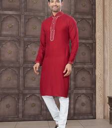 Red colour pure cotton with embroidery and pintex work kurta pajama mens wear