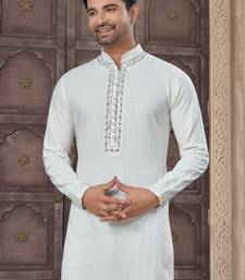 White colour pure cotton with embroidery and pintex work kurta pajama mens wear
