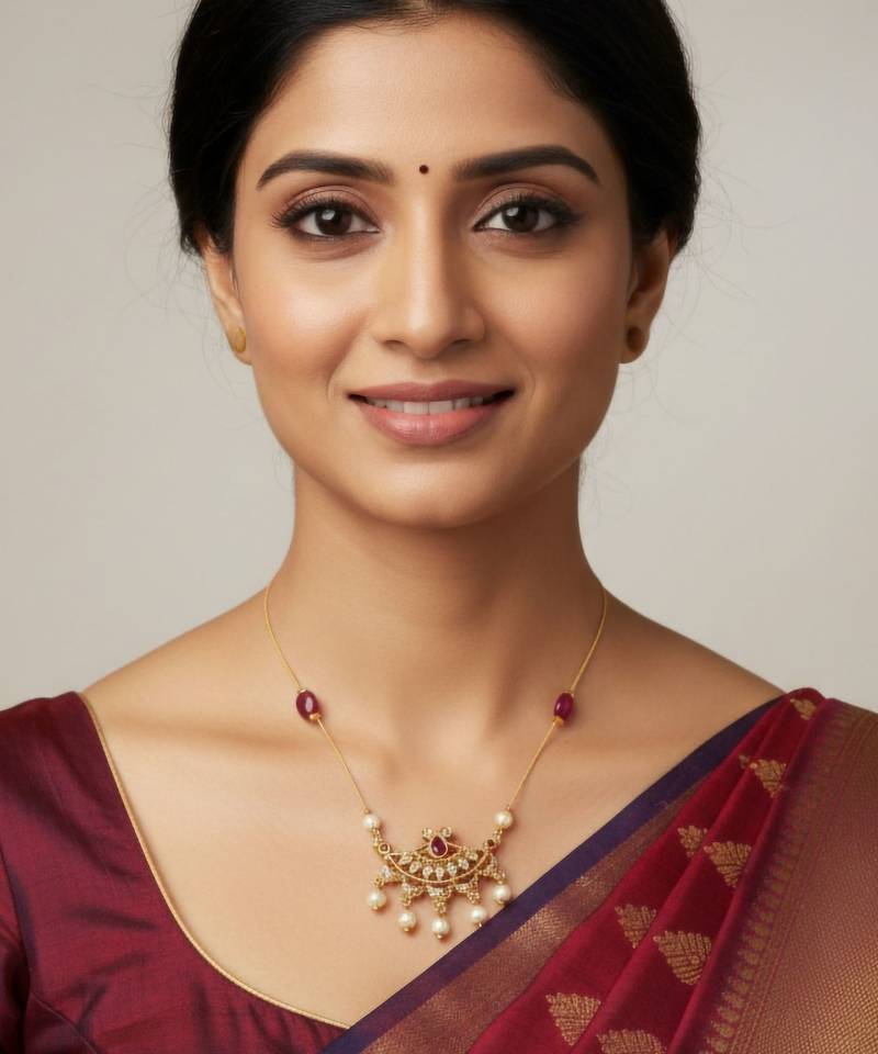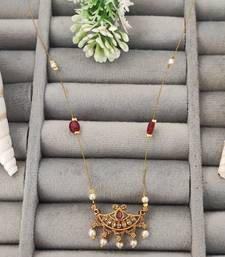 | Product Description | This Elegant Gold Plated Necklace Features A Detailed Ruby Studded Pendant With Pearl Drops And Matching Ruby Beads. Lightweight And Stylish, It Beautifully Complements Festive, Traditional, And Everyday Outfits With An Ethnic Charm |