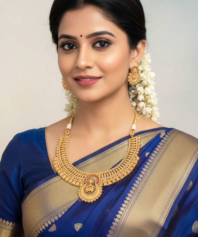 | Product Description | Elegant Antique Gold Lakshmi Temple Necklace Set Featuring Detailed Craftsmanship, Rich Traditional Motifs, And Matching Earrings. Perfect For Weddings, Festive Occasions, Temple Functions, And Classic South Indian Ethnic Styling |