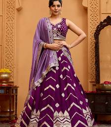 Burgundy- silk fabric sequins embroidery semi-stitched lehenga & unstitched blouse with dupatta