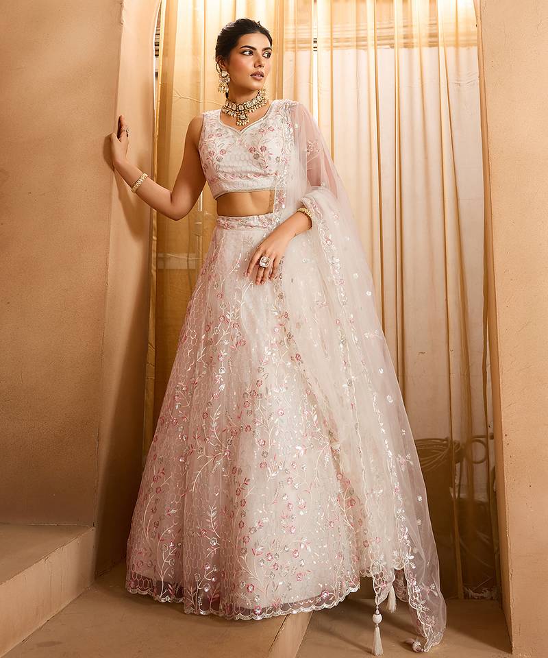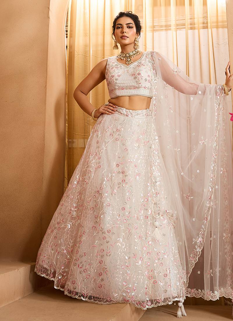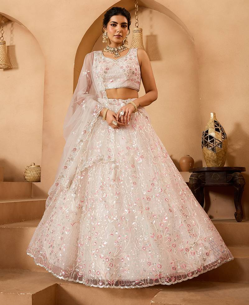 Product Name | Cream Net Fabric Sequins Embroidery Semi Stitched Lehenga & Unstitched Blouse With Dupatta | |