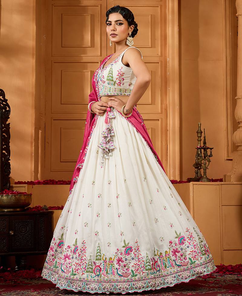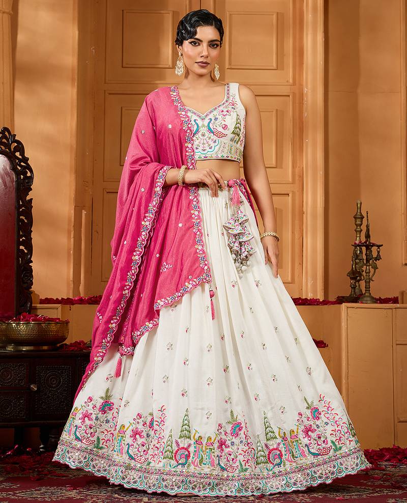| Product Name | Cream Silk Fabric Sequins Embroidery Semi Stitched Lehenga & Unstitched Blouse With Dupatta | |