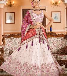 Cream tissue fabric sequins embroidery semi stitched lehenga & unstitched blouse with burgundy color dupatta