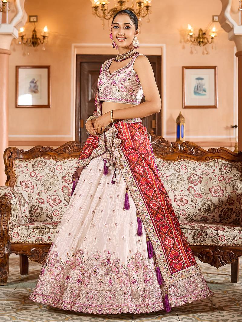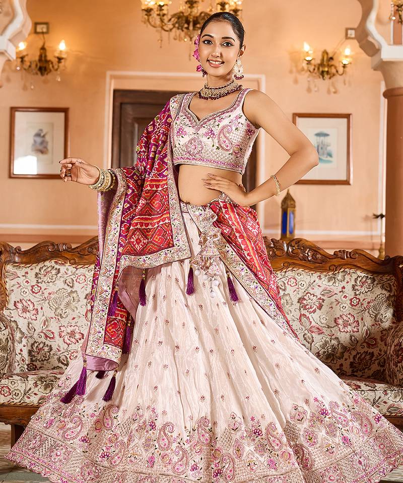 | Product Name | Cream Tissue Fabric Sequins Embroidery Semi Stitched Lehenga & Unstitched Blouse With Burgundy Color Dupatta | |