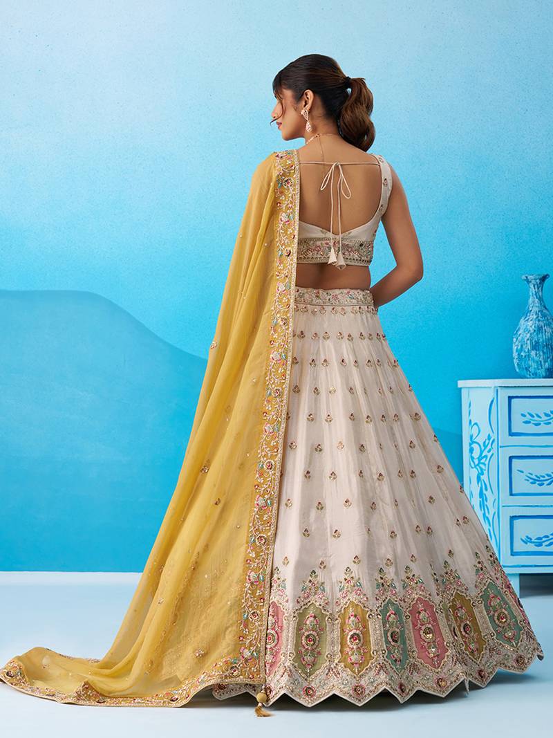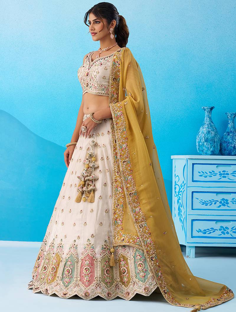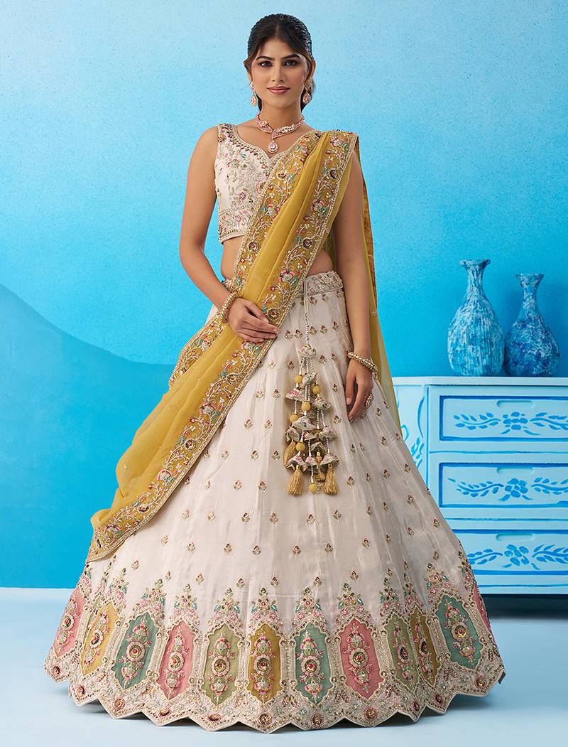 | Product Name | Cream Tissue Sequins Embroidered Multicolor Patch Work Semi Stitched Lehenga & Unstitched Blouse With Dupatta | |