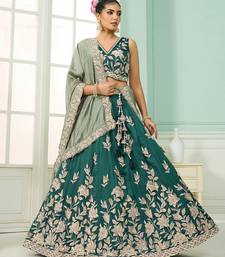 Green- silk fabric sequins embroidery semi-stitched lehenga & unstitched blouse with dupatta