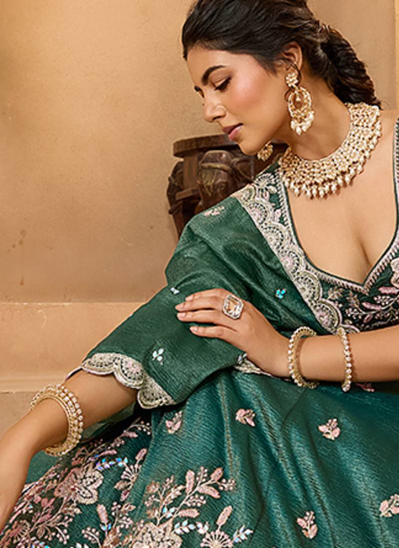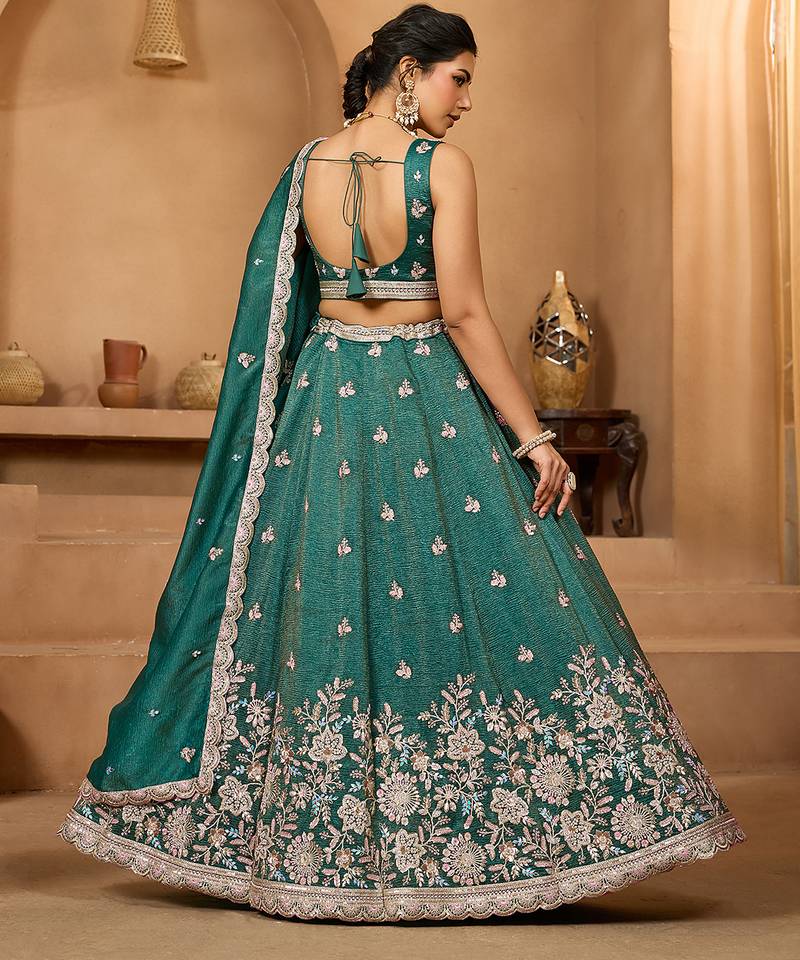 Product Description | • Lehenga: Made Of Premium Quality Green Color With Tissue Fabric Full Flaire Semi Stitched Lehenga With Sequins And Stone And Coding Work Has A Thread Embroidery Work. Has A Thread Cutwork Border On The Hemline.