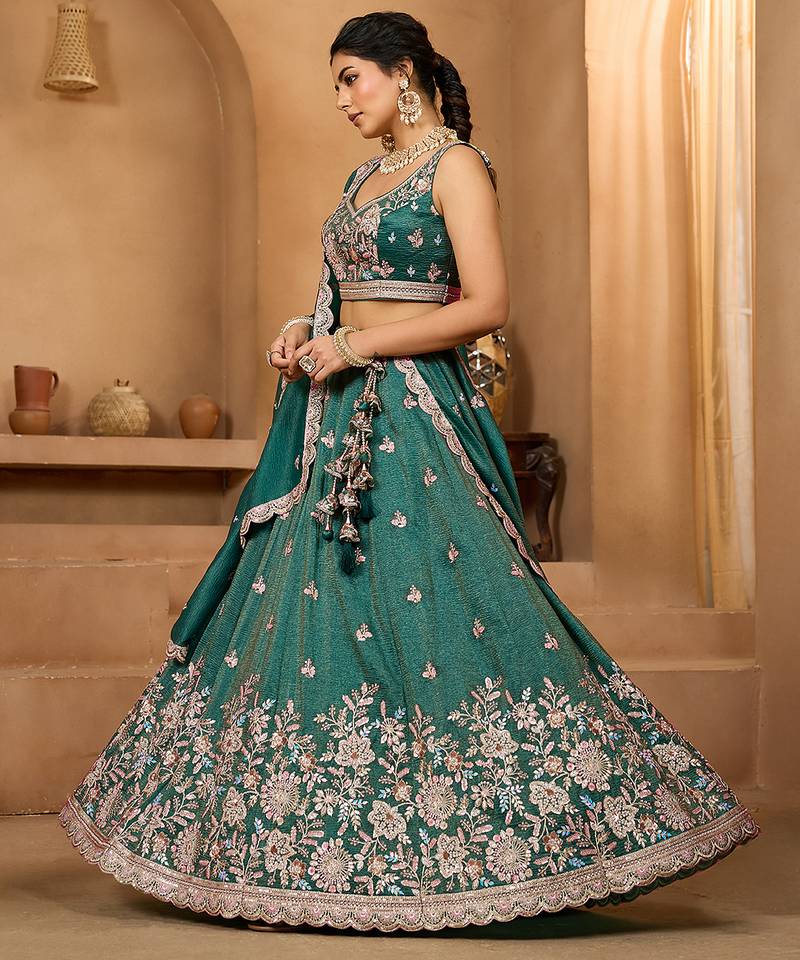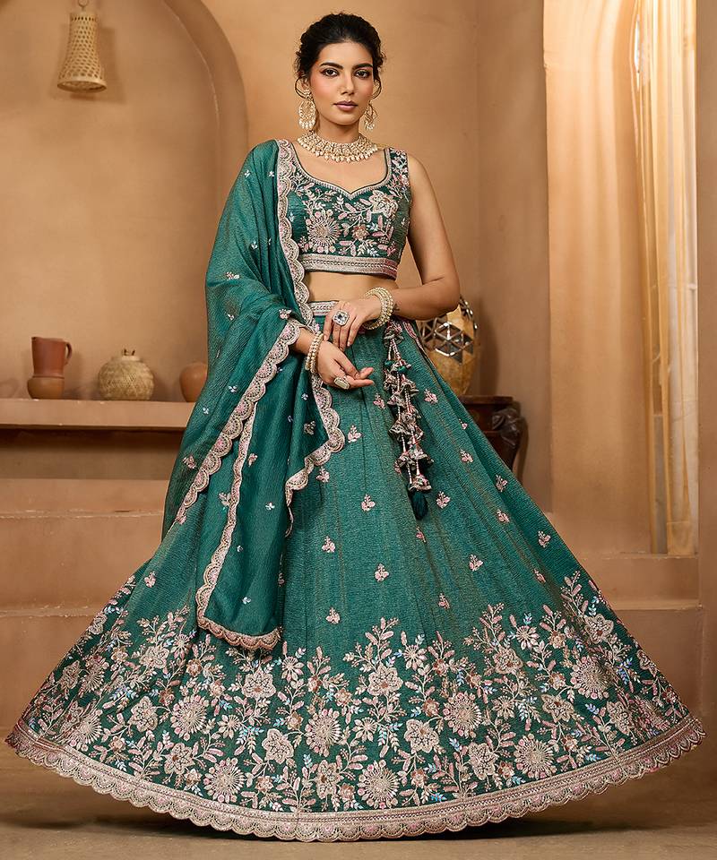 Product Name | Green Tissue Fabric Sequins Embroidery Semi Stitched Lehenga & Unstitched Blouse With Dupatta | |