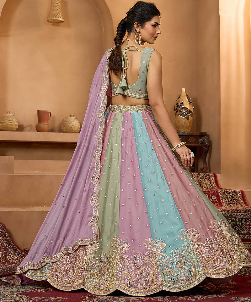Lavender- georgette fabric sequins embroidery semi-stitched lehenga & unstitched blouse with dupatta