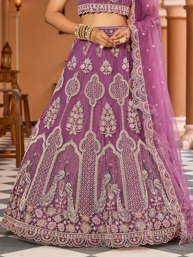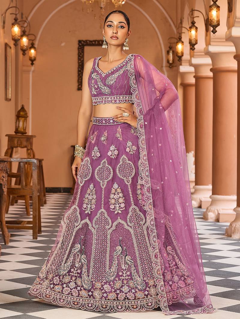 Lavender net fabric sequins embroidery semi stitched lehenga & unstitched blouse with dupatta