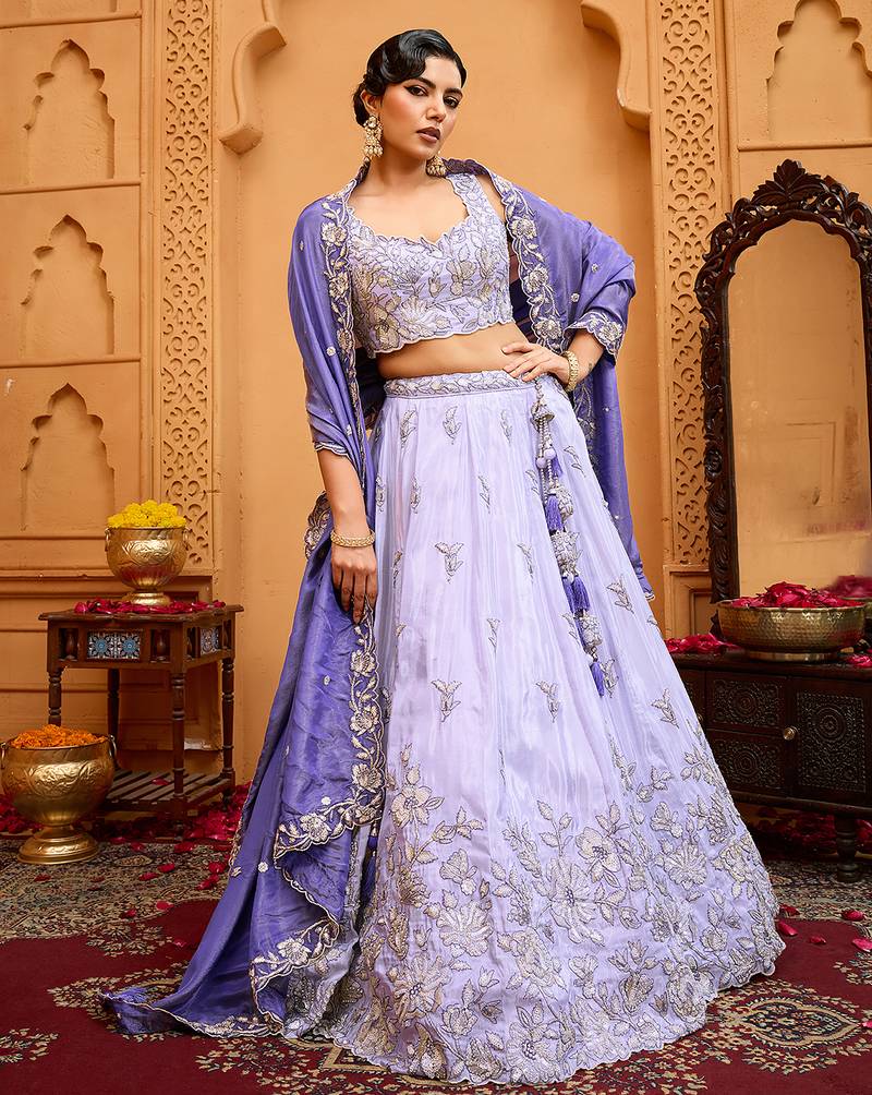 Product Name | Lavender Tissue Fabric Sequins Embroidery Semi Stitched Lehenga & Unstitched Blouse With Dupatta | |