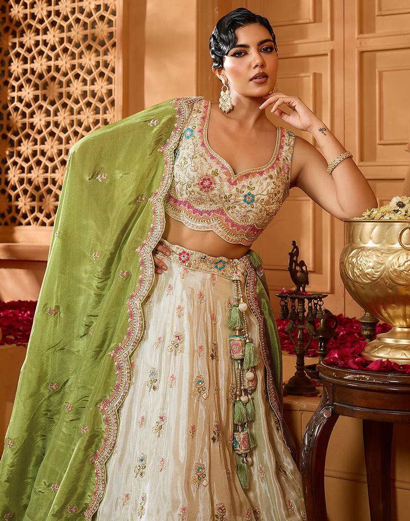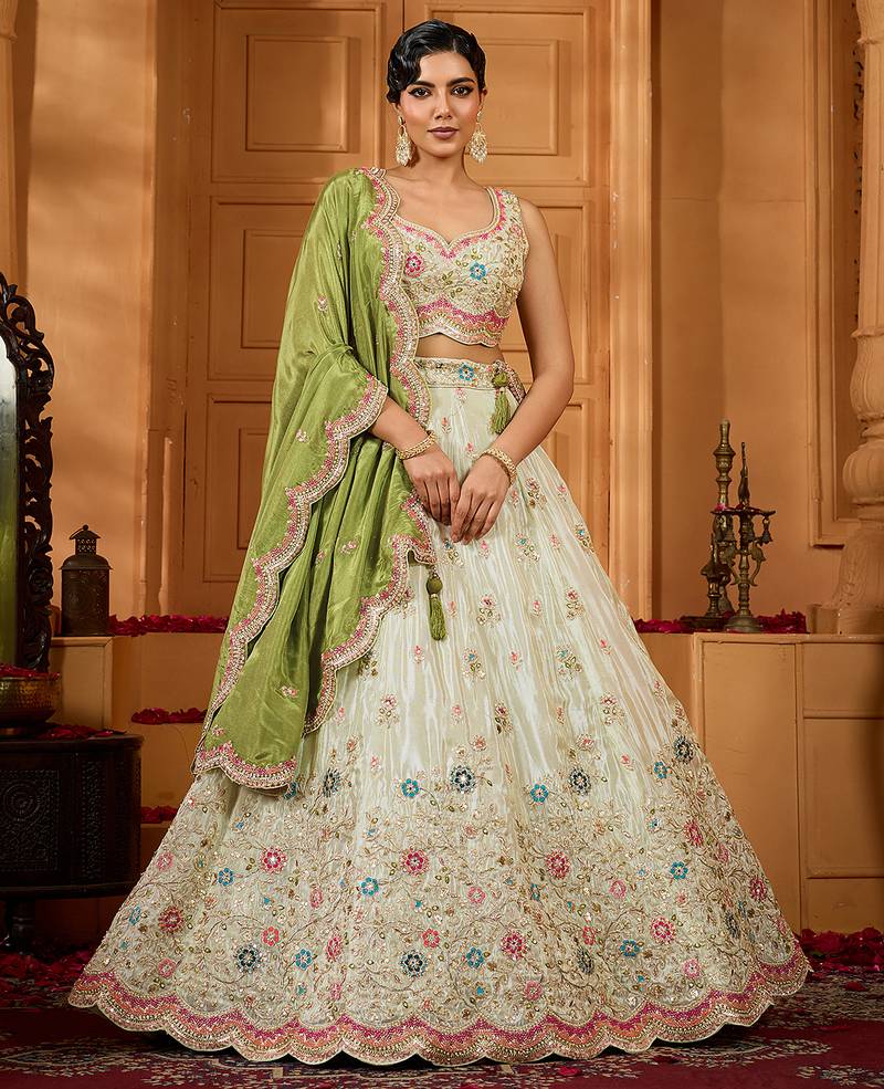 Product Name | Limegreen Tissue Fabric Sequins Embroidery Semi Stitched Lehenga & Unstitched Blouse With Dupatta | |