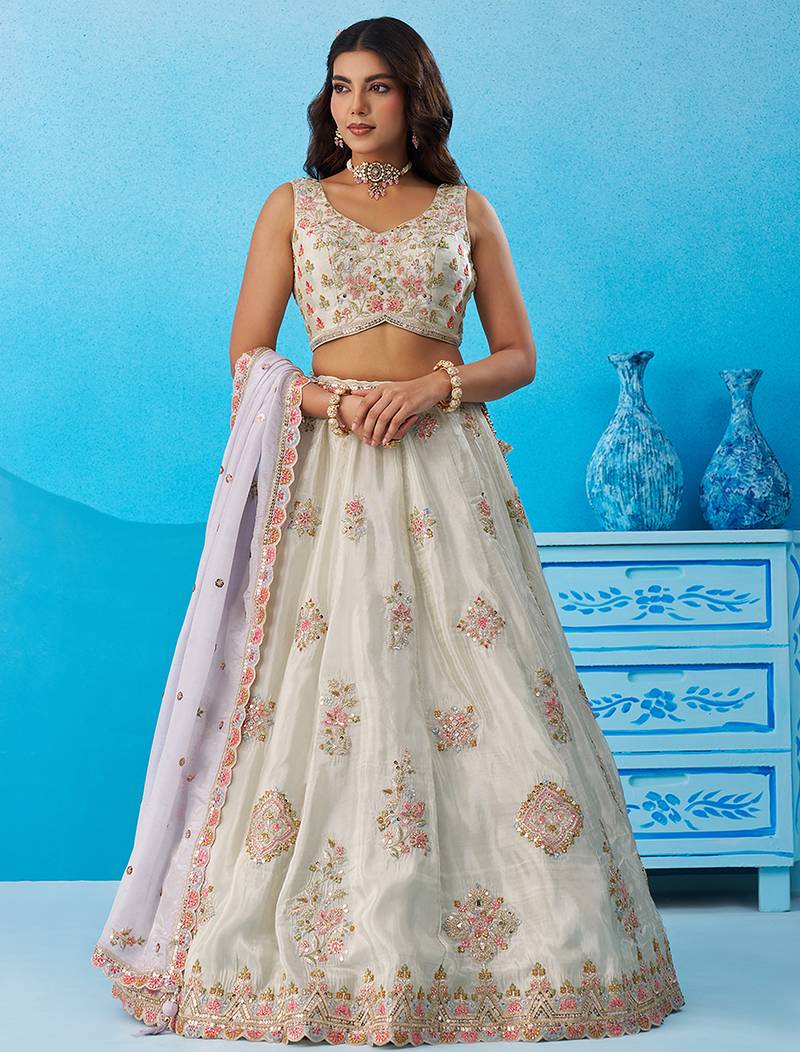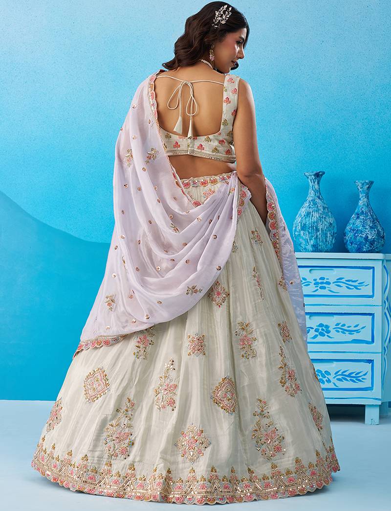 Product Name Limegreen Tissue Sequinned & Zari Embroidered Semi Stitched Lehenga & Unstitched Blouse With Dupatta