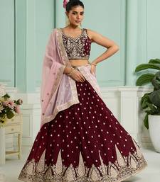 Maroon- organza fabric sequins embroidery semi-stitched lehenga & unstitched blouse with dupatta