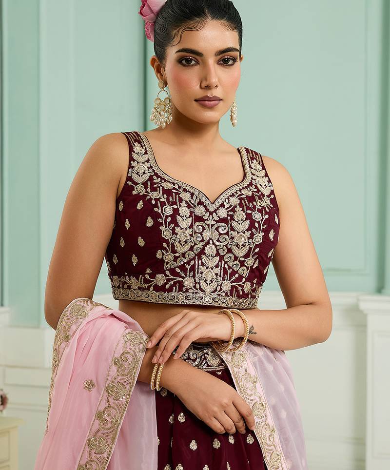 Product Name | Maroon Organza Fabric Sequins Embroidery Semi Stitched Lehenga & Unstitched Blouse With Dupatta | |