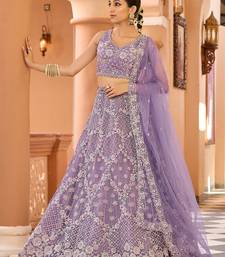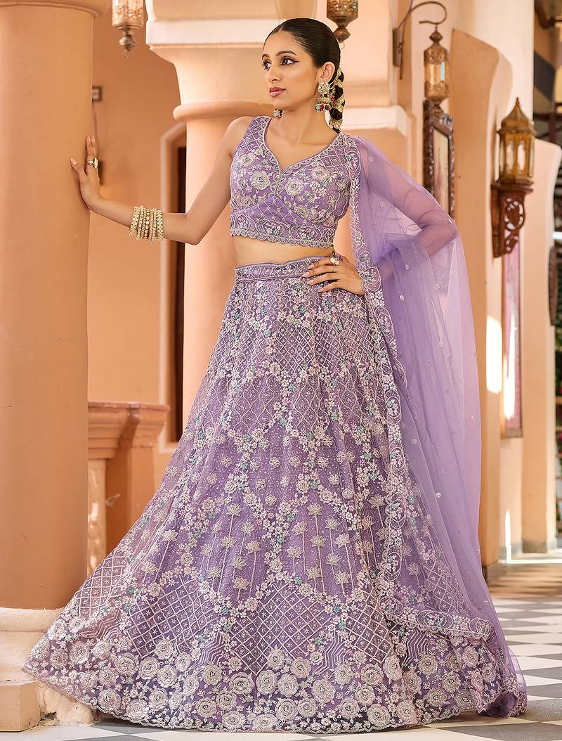 Mauve net fabric sequins embroidery semi stitched lehenga & unstitched blouse with dupatta