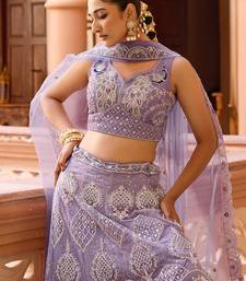 Mauve net fabric sequins embroidery semi stitched lehenga & unstitched blouse with dupatta