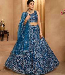 Navyblue- net fabric sequins embroidery semi-stitched lehenga & unstitched blouse with dupatta