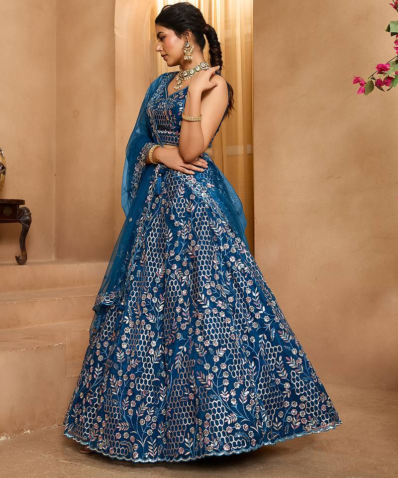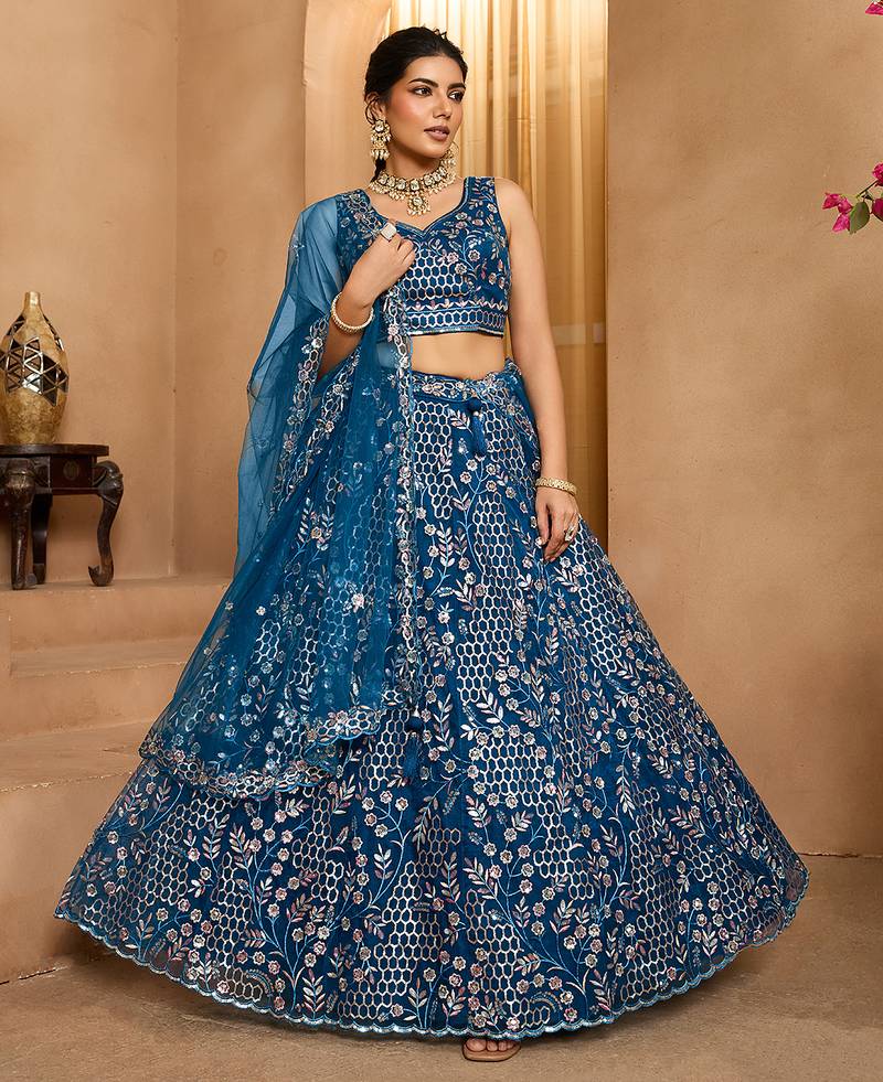Product Name | Navyblue Net Fabric Sequins Embroidery Semi Stitched Lehenga & Unstitched Blouse With Dupatta | |