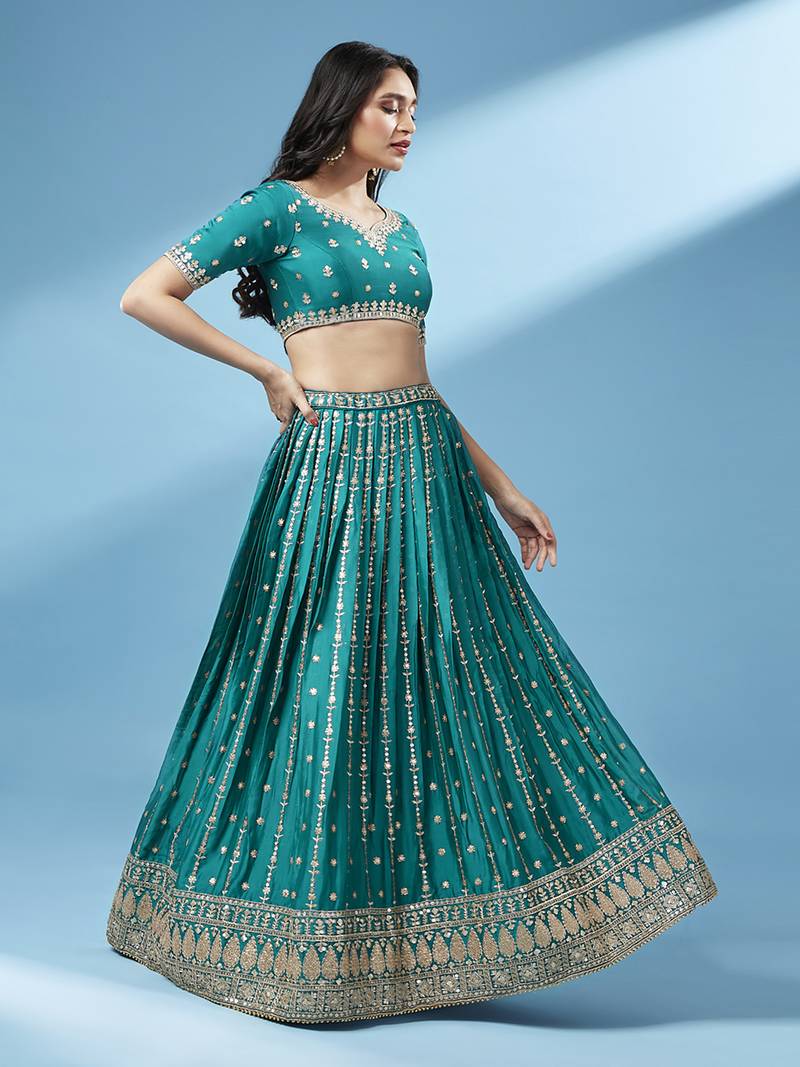 | Product Name | Panchhi Green Pure Georgette Sequins Embroidered Semi Stitched Lehenga | |