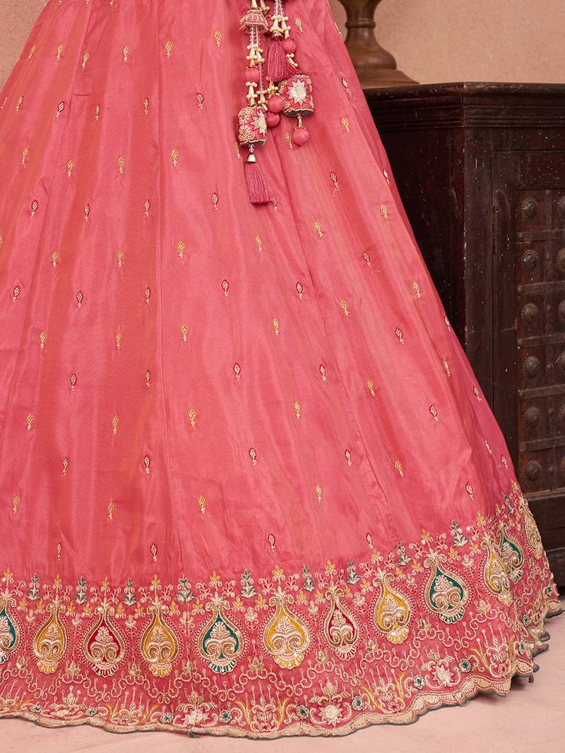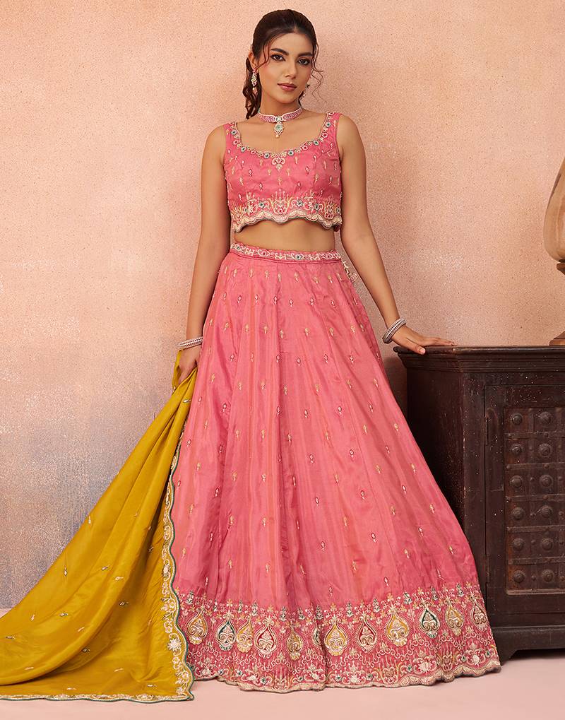Product Name Pink Cosmos Silk Beads & Sequins Embroidered Semi Stitched Lehenga & Unstitched Blouse With Dupatta