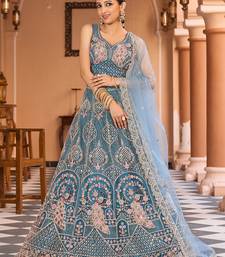 Teal net fabric sequins embroidery semi stitched lehenga & unstitched blouse with dupatta