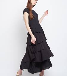 | Product Description | Solid Black, Fit And Flare Fit, Close Round Neck, Maxi Tier Dress With Short Sleeves, Piping Edge And Flare Hem. |