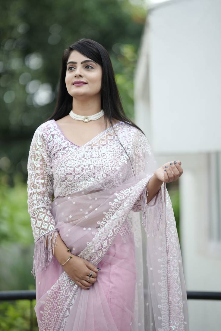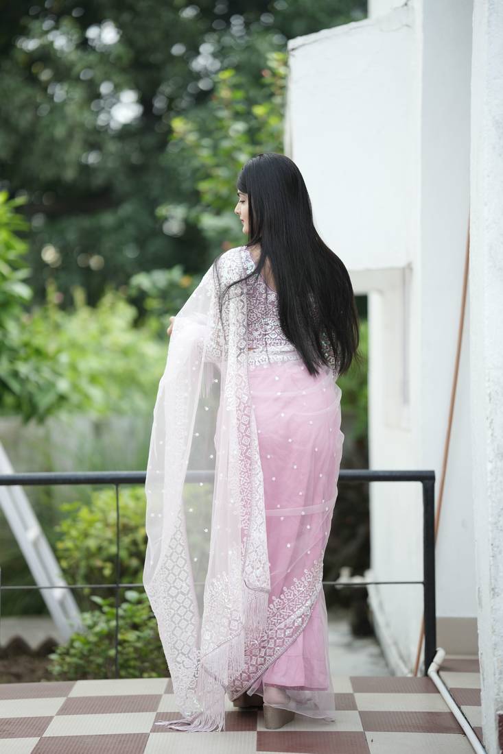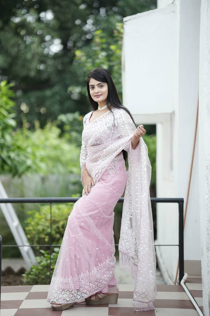 | • | Saree | : | Color- Pink / Fabric- Net |