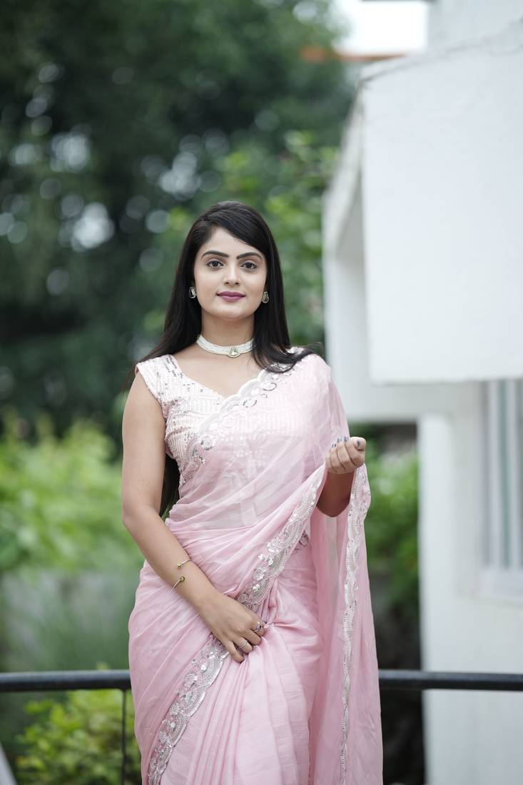 | Product Name | Light Pink Woven Jari Lining, Sequence Embroidery Work Chiffon Saree With Blouse Piece | |