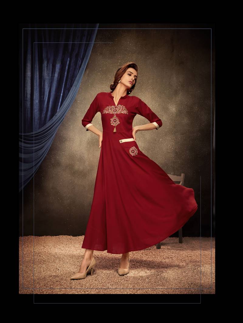 | Product Description | Add This Pretty Readymade Designer Gown To Your Wardrobe In Red Color. This Pretty Gown Is Fabricated On Rayon Beautified With Thread Embroidery. Its Fabric Is Soft Towards Skin, Light Weight And Easy To Carry All Day Long. |