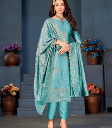 | Product Name | Sky Blue Blooming Color,Designer Embroidery Work Vichitra Silk Unstitched Long Length Kameez Pant Party Wear Salwarsuit | |
