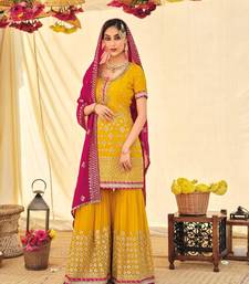 | Product Name | Yellow Heavy Designer Embroidery Work Faux Georgette Unstitched Designer Sharara Silk Salwar Suit | |
